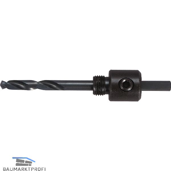 Komplett mit Zentrierbohrer, zur Aufnahme von Lenox Lochsägen. Ohne Mitnehmerstift.