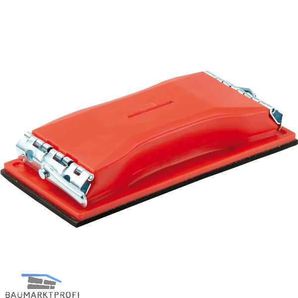Mit 2 Federklemmhaltern und elastischer Schleifplatte aus Moosgummi. Geeignet für alle handelsüblichen Schleifpapiere.