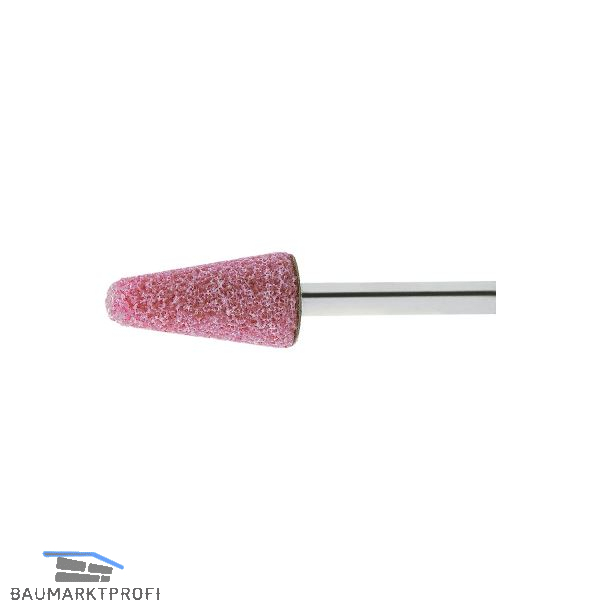 Marke: Lukas Schaft ø (mm): 6 Kopf ø (mm): 25 Länge (mm): 70 Schaftlänge (mm): 40 Körnung: 36 Ausführung: Form KE, Kegel DIN: 69170 Material: Edelkorund rosa
