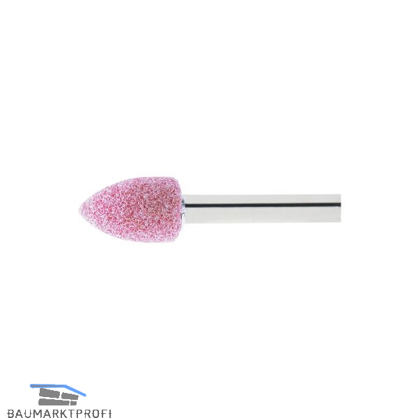 Mit Stahlschaft zum Einsatz auf Geradschleifern. Universaltype aus Edelkorund rosa zur Bearbeitung von vergüteten Stählen, legierten Stählen, Gusseisen, Temperguss, Stahlguss. Schnittgeschwindigkeit: v= ca. 30 - 50 m/s.
