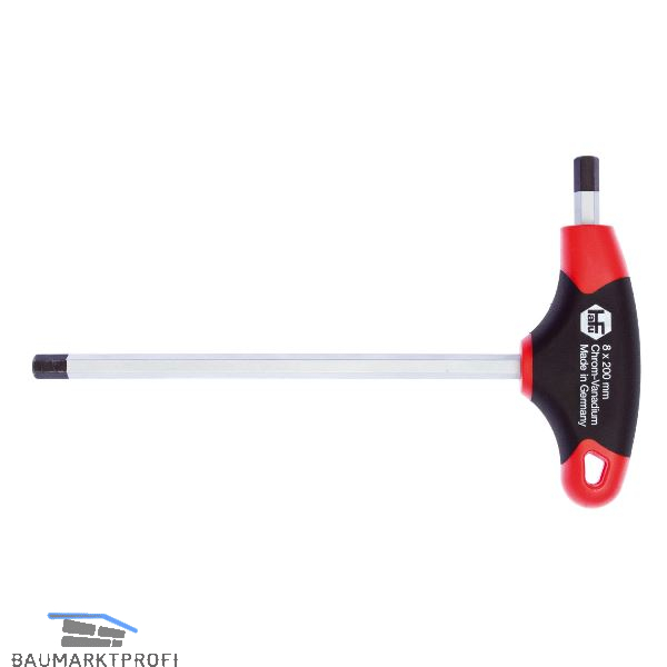 Stiftschlüssel mit ergonomischem 2-Komponenten T-Griff und Seitenabtrieb.