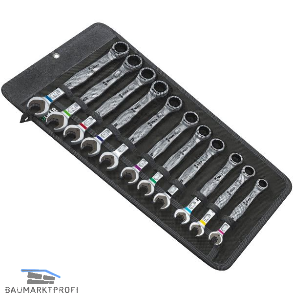 In nahezu jeder denkbaren Situation löst der Joker Schraubaufgaben in hoher Geschwindigkeit und mit hoher Präzision. Seine Ratschenmechanik auf der Ringseite weist eine außergewöhnlich hohe Feinverzahnung mit 80 Zähnen auf und sorgt für Flexibilität auch in engen Bauräumen. Mit Werkzeugfinder "Take it easy" Farbcodierung.