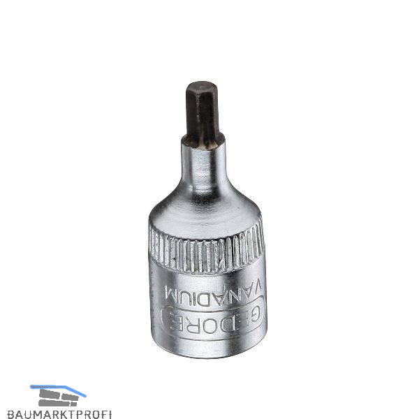 Für Innensechskantschrauben. Mit Innenvierkantantrieb C 6,3 DIN 3120 - ISO 1174. Mit Kugelfangrille, griffig gerändelt. Spitzen aus Gedore-Vanadium Sonderstahl, manganphosphatiert.