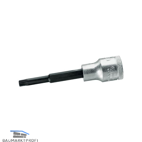 Mit Innenvierkantantrieb C 12,5 DIN 3120 - ISO 1174. Mit Kugelfangrille, griffig gerändelt und eingepresstem Stift aus Gedore-Vanadium Sonderstahl, manganphosphatiert. Spitze nach DIN 2325.