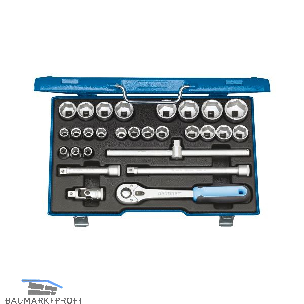 GEDORE Steckschlüssel-Satz 19 VMU-10 1/2"vierkant mit Umschaltknarre 28-teilig