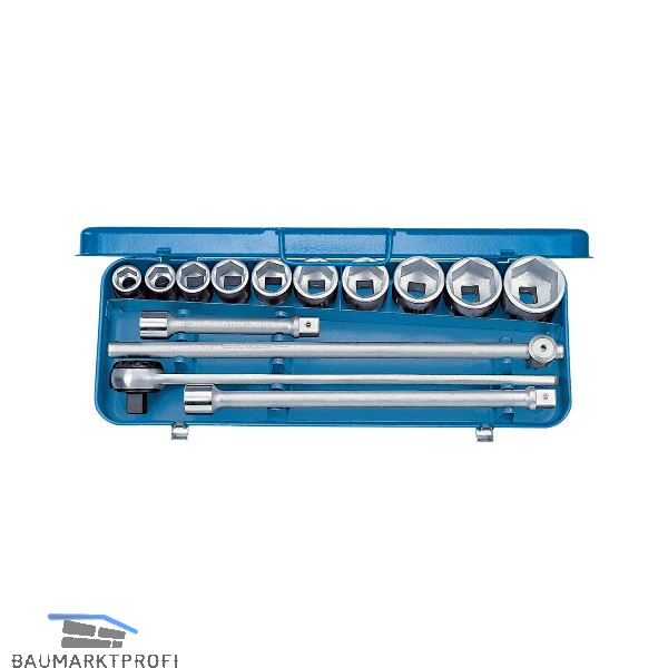 Mit geschmiedeten, vergüteten 6-kant Unit Drive Einsätzen und Betätigungswerkzeugen in blauer Stahlblechkassette.