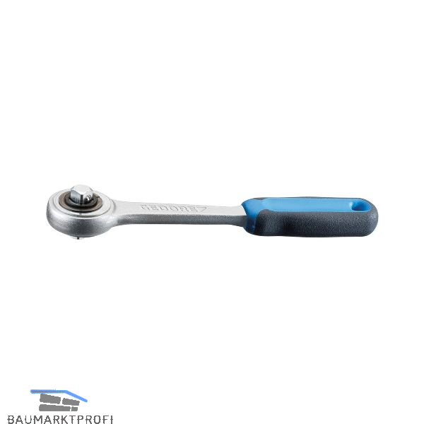 Für handbetätigte Steckschlüsseleinsätze mit Verbindungsvierkant C 6,3 DIN 3120 - ISO 1174, mit Kugelarretierung. 2 Komponenten-Griff mit Aufhängeloch. Mit Durchsteckvierkant, mittelfein verzahnt und sehr robust.
