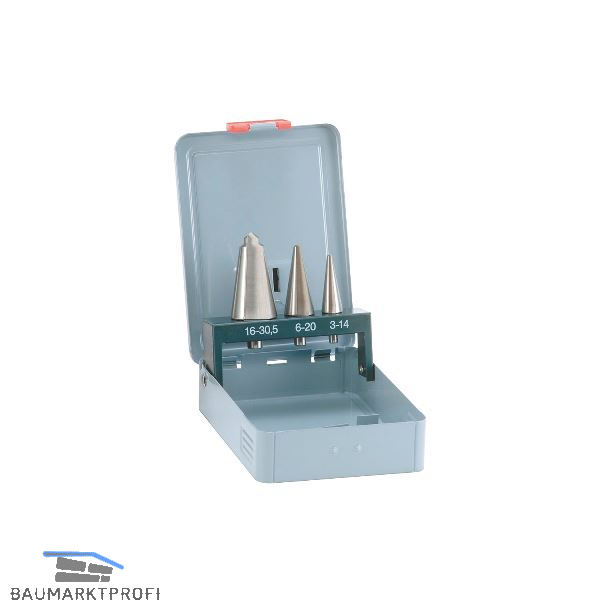 Marke: Alpen Bohrer ø von bis (mm): 3,5 - 30 Inhalt: Gr. 1 (3,5-14), Gr. 2 (6,0-20,0), Gr. 3 (16,0-30,0) Satzgröße: 3-tlg. Material: HSS Aufnahme: Zylinderschaft Type: Code 721