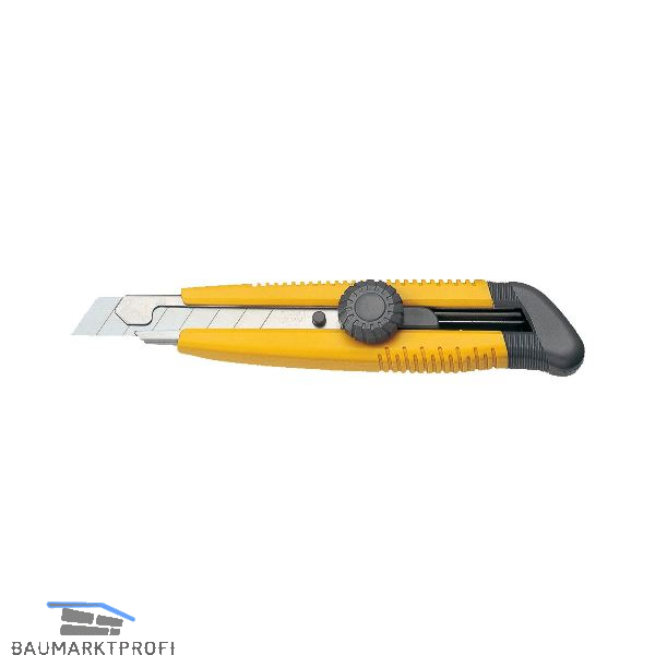 Stabile Ausführung mit Abbrechklinge, Stahlklingenführung und Fixier-Rändelschraube.