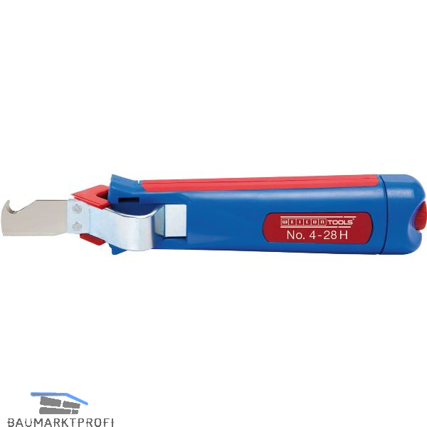 Mit zusätzlicher Hakenklinge für Steg- und Flachkabel. Schnitttiefe einstellbar durch Stellschraube im Griff. Verfügt über einen ergonomisch geformten, rutschfesten Mehrkomponenten-Griff.