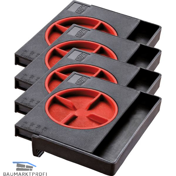 Zum Verlegen von Laminat und Fertigparkettböden ganz ohne Keile. Stufenlos schnell einstellbar mit praktischem Drehknopf, für Wandabstand von 5 bis 20 mm. Abstandhalter für schwimmend verlegte Laminat- und Fertigparkettböden. Breite Anlage- und Abstützfläche zur Vermeidung von Druckstellen an Diele und Putz. Leichtes Entfernen durch einfaches Zurückdrehen.