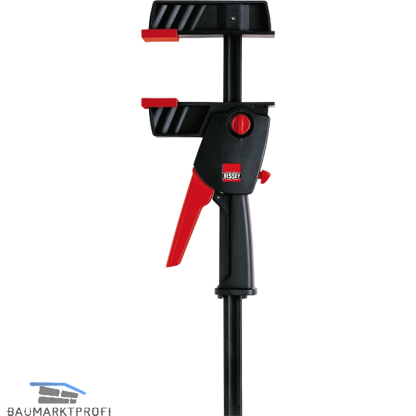 Komfortable Einhandbedienung ohne Kraftaufwand. Die großen, planen Spannflächen aus schlag- und bruchfestem, verstärktem Polyamid laufen exakt parallel. Der praktische Drehknopf ermöglicht jederzeit das einfache Umstellen von Spannen auf Spreizen. Der ergonomisch geformte Griff mit Pumphebel läuft parallel zur Schiene. Der Lösehebel dient zum sofortigen Lösen und zum schnellen Verstellen. Spannkraft bis zu 1200 N.