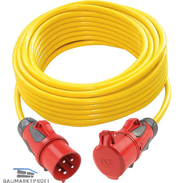 PVC-Baustellenleitung gelb, mit montiertem CEE-Phasenwender 16A 5p 400V und CEE-Kupplung 16A 5p 400V.