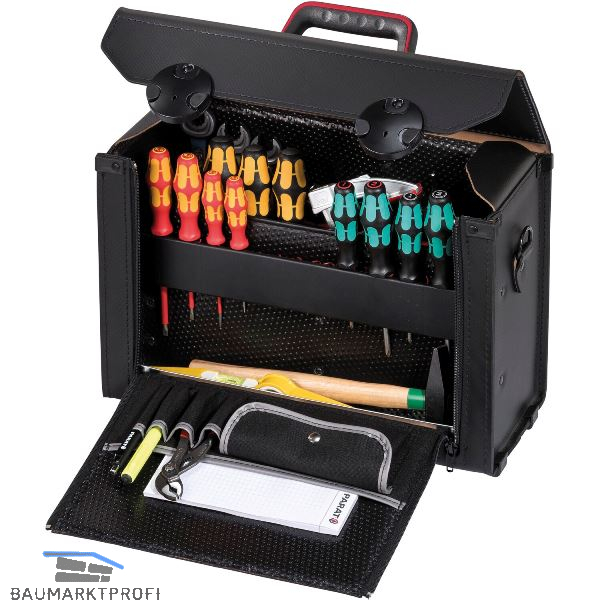 Werkzeugtasche aus hochwertigem Rindsleder in Verbindung mit dem strapazierfähigen Material Con-Pearl®.