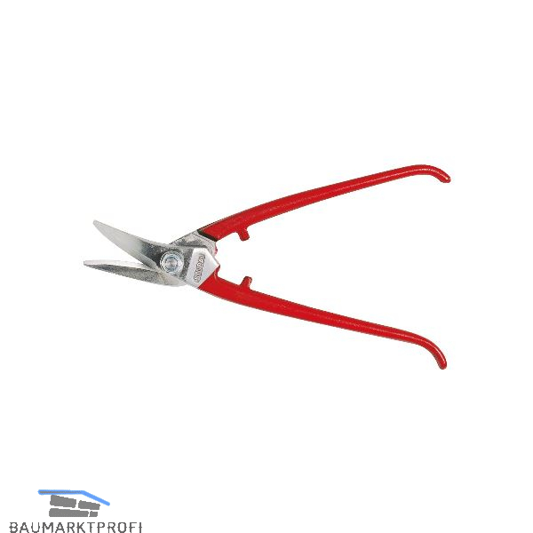 Spezialschere für Kurvenschnitte und lange durchlaufende Schnitte, Kopf poliert, Schneiden induktiv gehärtet, Härte: 60-62 HRC.