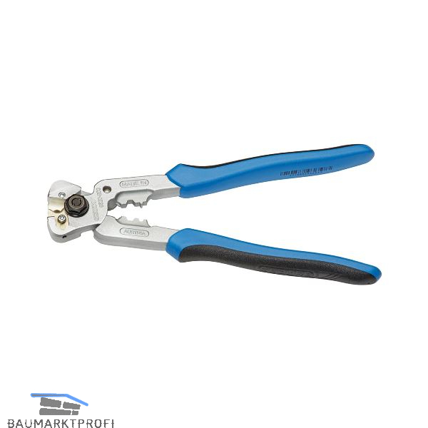 Mit zwei Pressprofilen für Endhülsen an Bowdenhüllen und Endkappen für Drahtseilzüge, spezielle bogenförmige Schneiden, Schneidplatten einfach auszuwechseln. Schneidenhärte 62-65 HRC. Extrem weicher Scherenschnitt verhindert zuverlässig das Aufspleißen des Drahtseils.