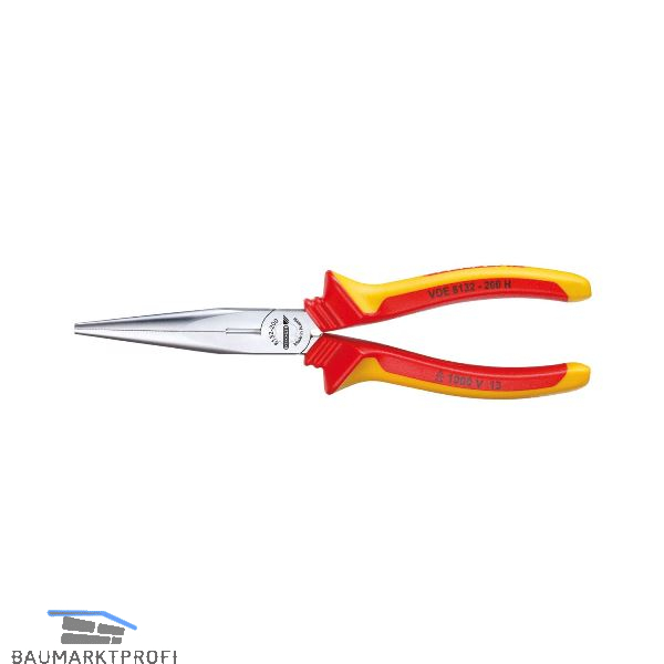 Induktiv gehärtete Präzisionsschneiden, Schneidenhärte 61-63 HRC, flach-runde Backen, Greiffläche gerade gezahnt. VDE geprüft bis 1000 Volt.