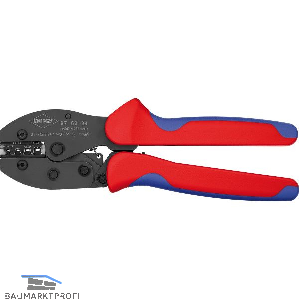 Gleichbleibend hohe Crimpqualität durch Präzisionseinsätze und Zwangssperre (entriegelbar). Crimpdruck ist werkseitig präzise eingestellt (kalibriert), nachstellbar. Kraftverstärkung durch Kniehebel für ermüdungsarmes Arbeiten. Gutes Handling durch günstige Griffstellung, geringes Gewicht, kurze Bauform und ergonomisch geformte Griffe. Mit Öffnungsfeder.