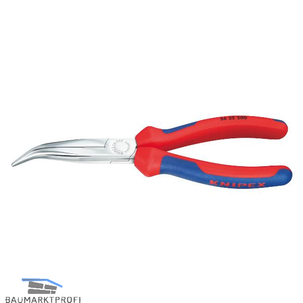 Hoch belastbare, elastische Präzisionsspitzen. Flach-runde, lange, spitz zulaufende Backen. Greifflächen gezahnt. Mit Schneiden für mittelharten Draht Ø 3,2 mm und harten Draht Ø 2,2 mm. Schneiden zusätzlich induktiv gehärtet, Schneidenhärte ca. 61 HRC. Vanadin-Elektrostahl, geschmiedet, mehrstufig ölgehärtet.