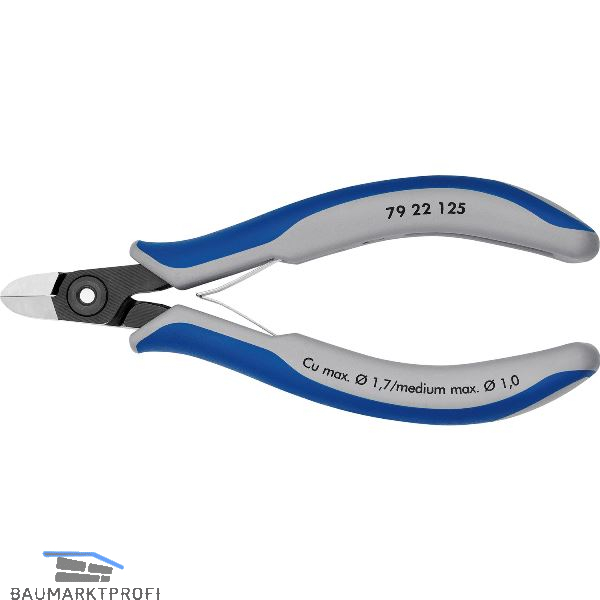 Präzisionszangen für feinste Schneidarbeiten, z. B. in Elektronik und Feinmechanik. Sehr genau geschliffene, scharfe Schneiden für exakte Schnitte an empfindlichen Elektronik-Bauteilen. Schneiden zusätzlich induktiv gehärtet. Schneidenhärte ca. 64 HRC. Ca. 20 % weniger Gewicht als konventionelle Elektronikzangen. Geschraubtes Gelenk mit besonders sorgfältig gefertigten Gelenkflächen für gleichmäßige, reibungsarme Bewegung im gesamten Öffnungsbereich. Leichtgängige Doppelfeder für ein sanftes und gleichmäßiges Öffnen.