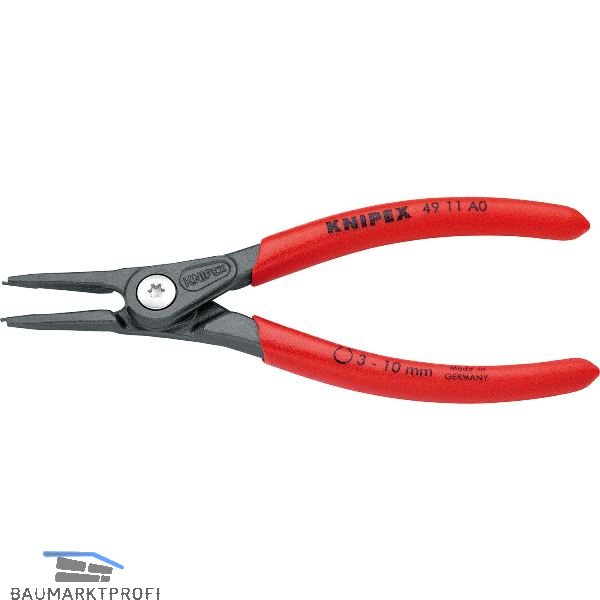 Für Außenringe auf Wellen. Geschmiedete Zange mit eingesetzten Spitzen aus gezogenem Federstahldraht höchster Güte. Hoch belastbar im Dauereinsatz, bis zu 10-fach höhere Standzeit im Vergleich zu herkömmlichen Sicherungsringzangen. Große Auflageflächen an den Spitzen. Mit innenliegender Öffnungsfeder.