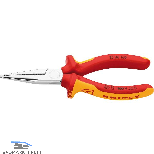 Geeignet für feinere Greif- und Schneidarbeiten, spitze, flach-runde Backen, Greiffläche gezahnt. Mit Schneiden für weichen, mittelharten und harten Draht. Schneiden zusätzlich induktiv gehärtet, Schneidenhärte ca. 61 HRC, Vanadin-Elektrostahl, geschmiedet, ölgehärtet.