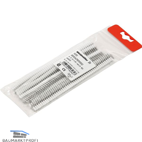 Lieferung per Packung mit 10 Streifen á 50 Stück Aderendhülsen.
