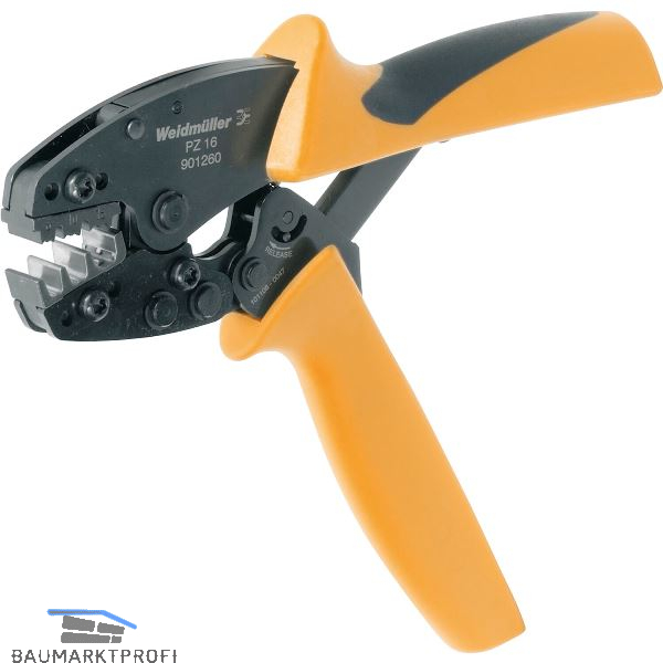 Für Aderendhülsen (nach DIN 46228 T.1 und T.4). Drei Crimpstationen entsprechend der Leiterquerschnitte. Zwangssperre garantiert Qualitätscrimp. Aderendhülseneinführung seitlich.