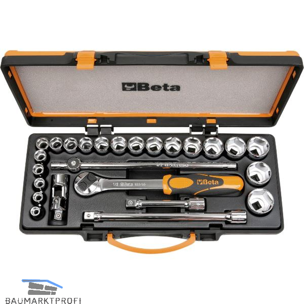 Mit verchromten 6-kant Einsätzen und Betätigungswerkzeugen in Blechkassette.