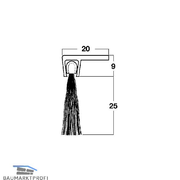 Türdichtungsbürste m. Winkelprofilleiste, 2000 mm, Borsten natur, Alu natur