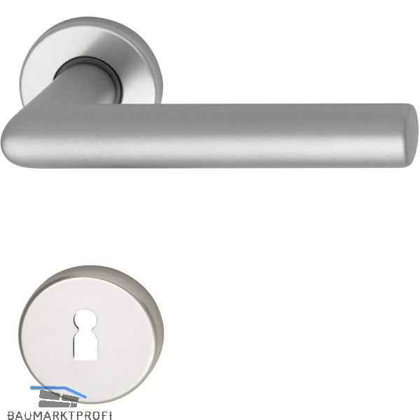 Drückergarnitur SCH L - Form - auf Rosette BB, 38 - 43, silber eloxiert