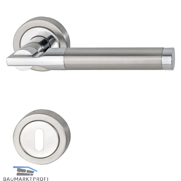 - Griff Zamak und Edelstahl / Rosette mit Edelstahl-Abdeckung verchromt/Edelstahl matt