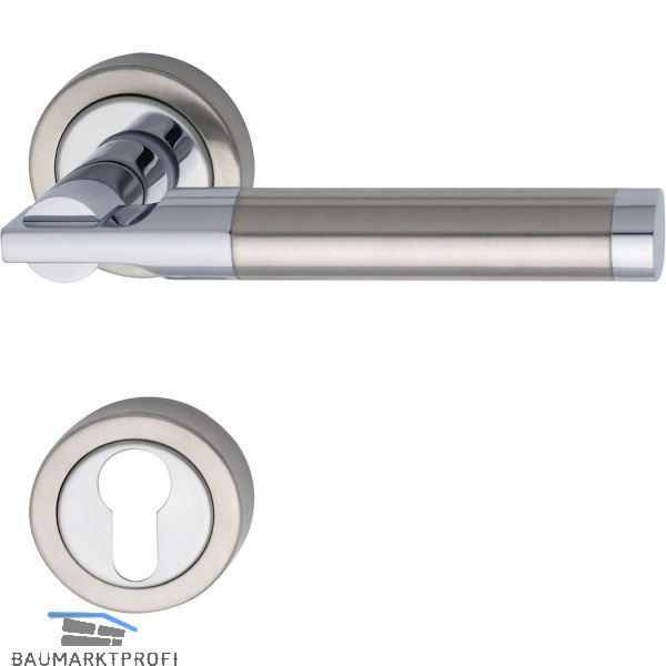 - Griff Zamak und Edelstahl / Rosette mit Edelstahl-Abdeckung verchromt/Edelstahl matt