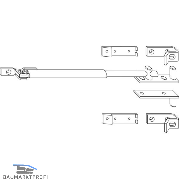 Lieferumfang:1 Gestänge inkl. Schließzapfenplatte oben1 Schließzapfenplatte unten2 Schließhaken2 Unterlagen für Schließhaken