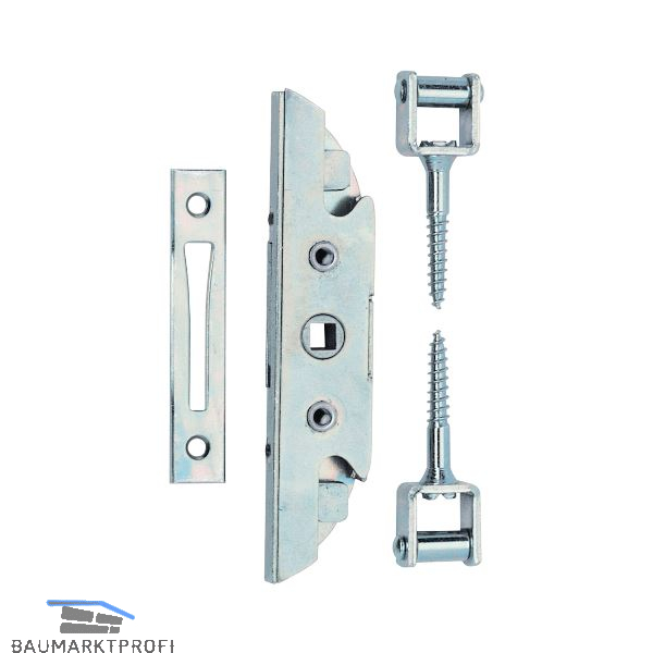 1 Einstecktrieb, 2 Rollkloben, 2 Senkholzschrauben 3 x 45, 2 Griffbefestigungsschrauben M5 x 35, 1 Schließblech