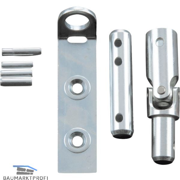 Lieferumfang:1 Kreuzgelenk1 Verbindungsbolzen1 Lagerplatte3 Spannstifte 4 x 16 mm1 Spiral-Spannstift mit Schaft 4 x 20 mm