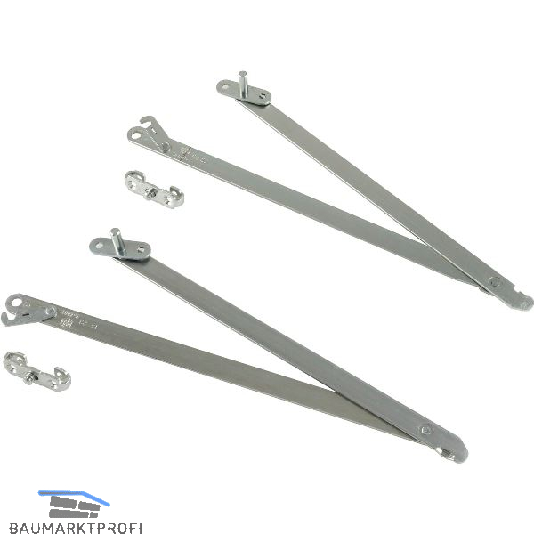 Einbauhinweis: Die Scheren sind so zu montieren, dass zwischen Offenstellung des Oberlichtöffners und der Sicherungsstellung der Scheren ein Sicherheitsbereich von 50 bis 100 mm liegt.