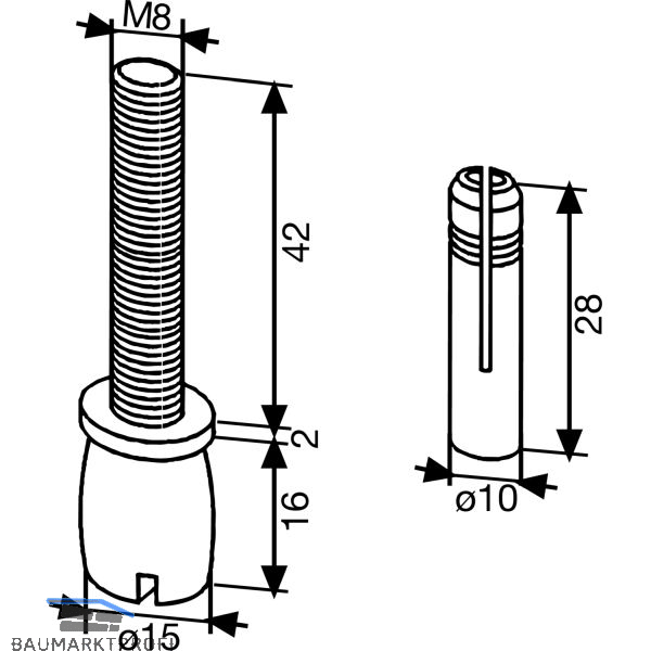 Ausführung: ø 15 mm, mit Dübel