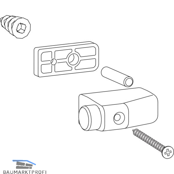 Lieferumfang:1 Flügelanschlag1 Befestigungsschraube1 Bolzen1 Unterlegplatte für Flügelanschlag1 Dübel