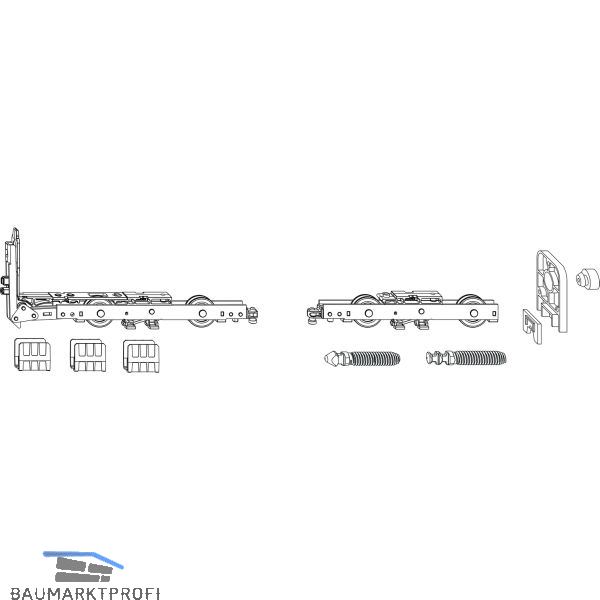 Lieferumfang:1 Laufwagen vorne1 Laufwagen hinten2 Verriegelungsbolzen3 Nutabstützungen1 Dichtungsgehäuse inkl. Dichtung1 Gummipuffer