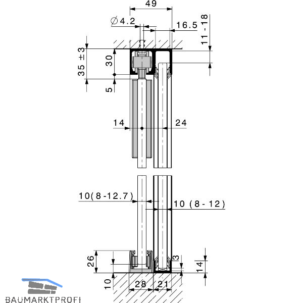 HAWA-Junior 40/GP Laufschienenset Festverglasung L=2000 mm Alu silber eloxiert