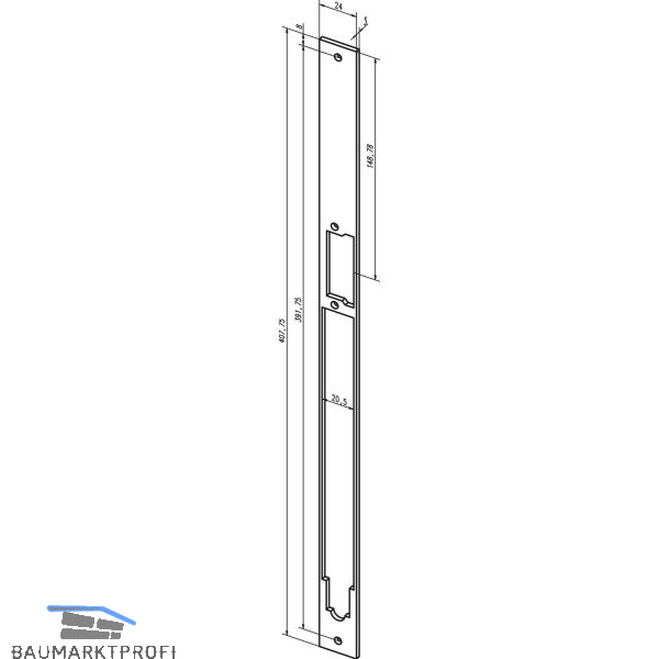Distanzblech für Mediator Türöffner, 24 x 407,75 x 3 mm eckig