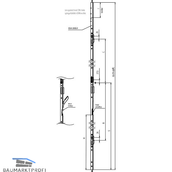 Grundteil ohne Verlängerung kürzbar um 104 mm: FFH ab 1916 mm einsetzbar