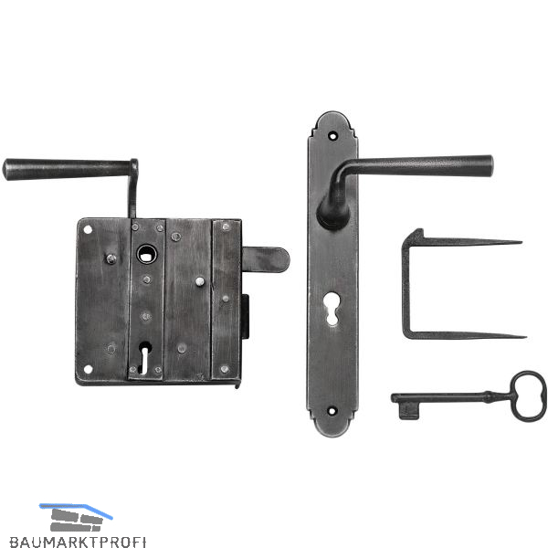 mit Schließhaken, 1 Paar Drücker und 1 Stück Außenschild.