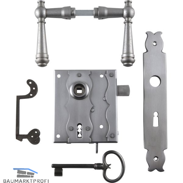 mit 1 Zierschlüssel mit blanker Raide, 1 Paar Türdrücker Münsterland, Eisen matt gebürstet