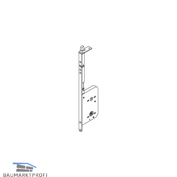 Der federnd gelagerte Fallenkopf wird über die Schloss-Stange mit einem Drücker oder einem Einlassgriff betätigt.