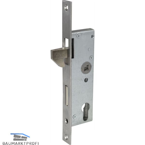 Schiebetürschloss m. Hakenfalle u. Riegel, PZW, DM 35, VK 8,5 mm,eckig,Edelstahl