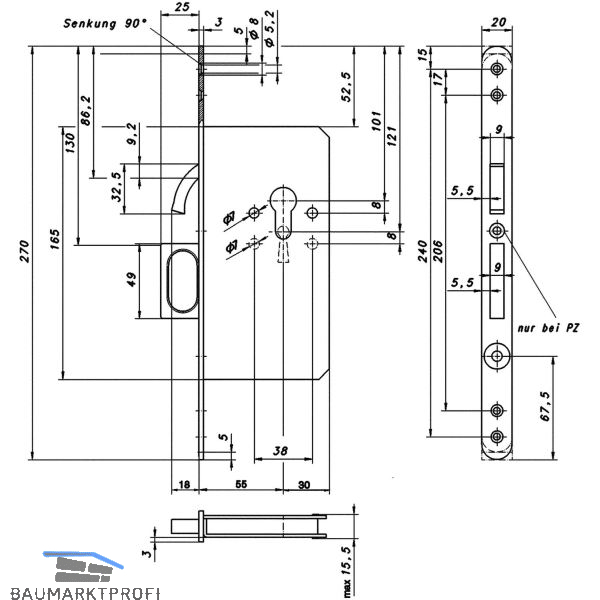 Lieferumfang: mit Schließblech, 1 Klappringschlüssel