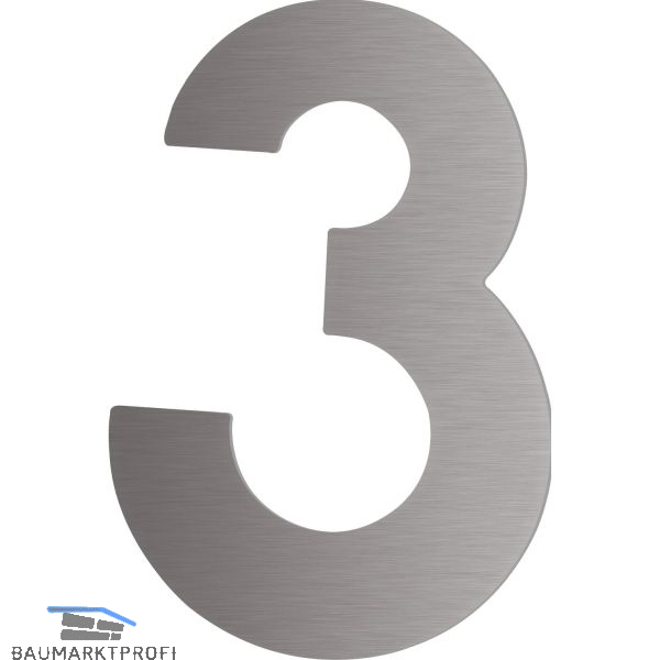 Hausnummer 3 - Höhe 120 mm, mit 2 Gewindenocken M5, Edelstahl