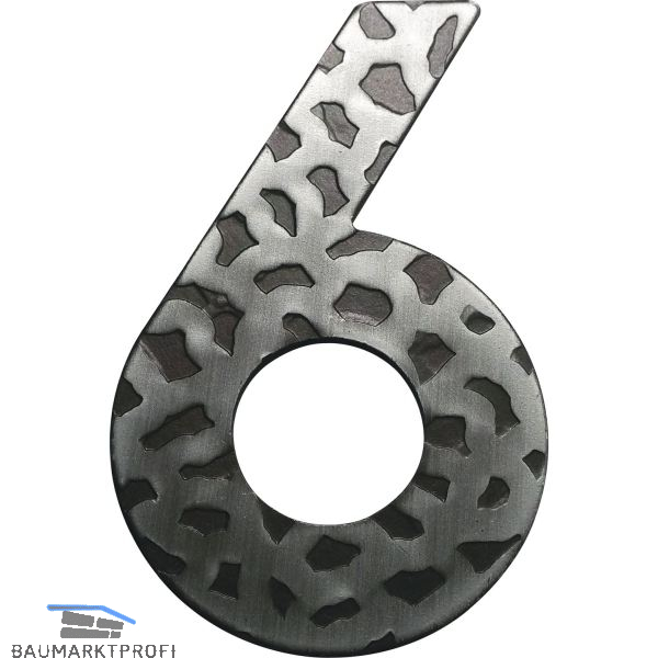 Hausnummer 6 - Höhe 120 mm, Schmiedeeisen schwarz verzinkt